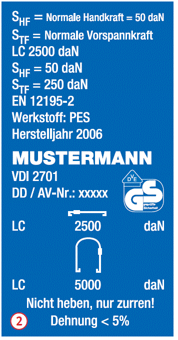 | STF = | Vorspannkraft der Ratsche "Wert für das Niederzurren" |