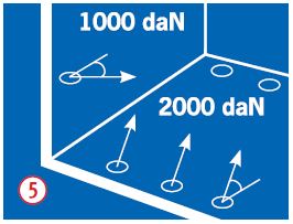 Bei µ = 0,6 sind 4 Zurrmittel und Zurrpunkte mit einer zulässigen Zugkraft (LC) von ≥ 1500 daN notwendig. Bei µ = 0,2 sind 4 Zurrmittel und Zurrpunkte mit einer zulässigen Zugkraft (LC) von 5000 daN notwendig.