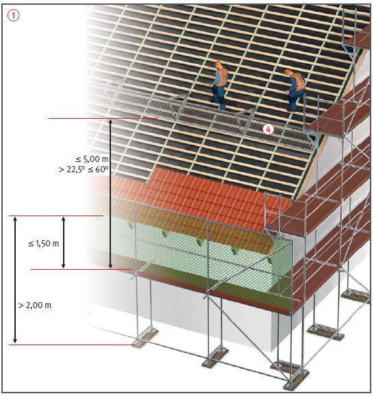 - Dachschutzwände müssen die zu sichernden Arbeitsplätze seitlich um mindestens 1,00 m überragen