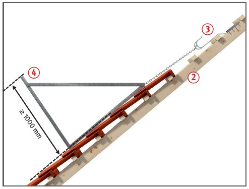 - Schutzwandhalter nur an durchgehenden, senkrecht zur Traufe verlaufenden, ausreichend tragfähigen Sparren befestigen.
