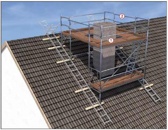 Auf-, Um- oder Abbau des Dachgerüsts nur unter Aufsicht einer fachkundigen Person.