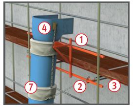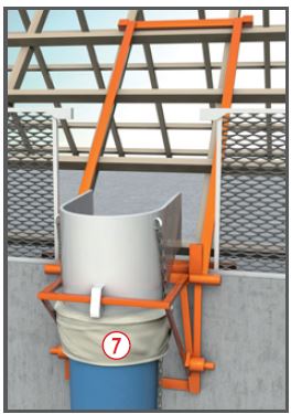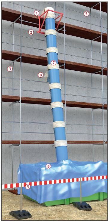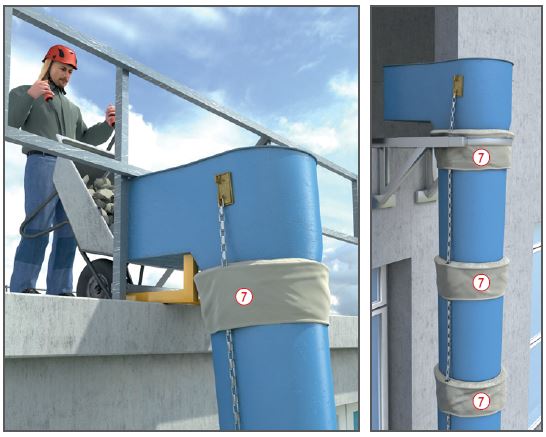 Zur Beseitigung von Verstopfungen der Schuttrutsche nicht unterhalb der Schuttrohröffnung arbeiten oder das Schuttrohr verziehen.