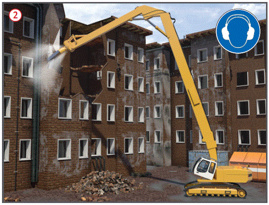 - Nur Abbruchgeräte mit ausreichender Reichhöhe einsetzen. Beim Abgreifen muss die Reichhöhe mindestens 0,50 m höher als die höchsten abzubrechenden Bauteile sein.
