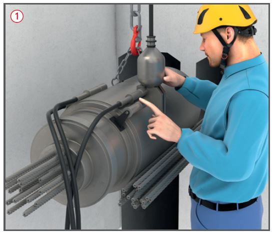- Beim Verladen von aufgetrommelten Fertigspanngliedern geeignete Lastaufnahmemittel verwenden.
