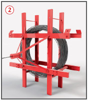 - Beim Abtrommeln von der Spanndrahtrolle Ausschlagen des Spanndrahtendes durch Schutzeinrichtungen verhindern