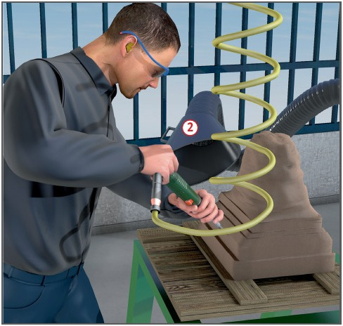 - Bei der Bearbeitung quarzhaltiger Materialien vor allem mit Maschinen zum Sägen, Fräsen, Schleifen, Polieren kann gesundheitsschädlicher Feinstaub auftreten.