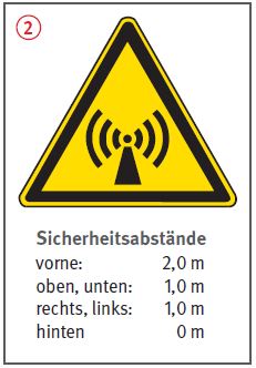 - Zu leistungsstärkeren Antennen mit einem Gefahrenhinweis des Netzbetreibers den dort konkret vorgegebenen Abstand einhalten