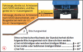 Sicherheitsabstände von Fahrzeugen, Baumaschinen oder Baugeräten bei nicht verbauten Baugruben und Gräben mit Böschungen