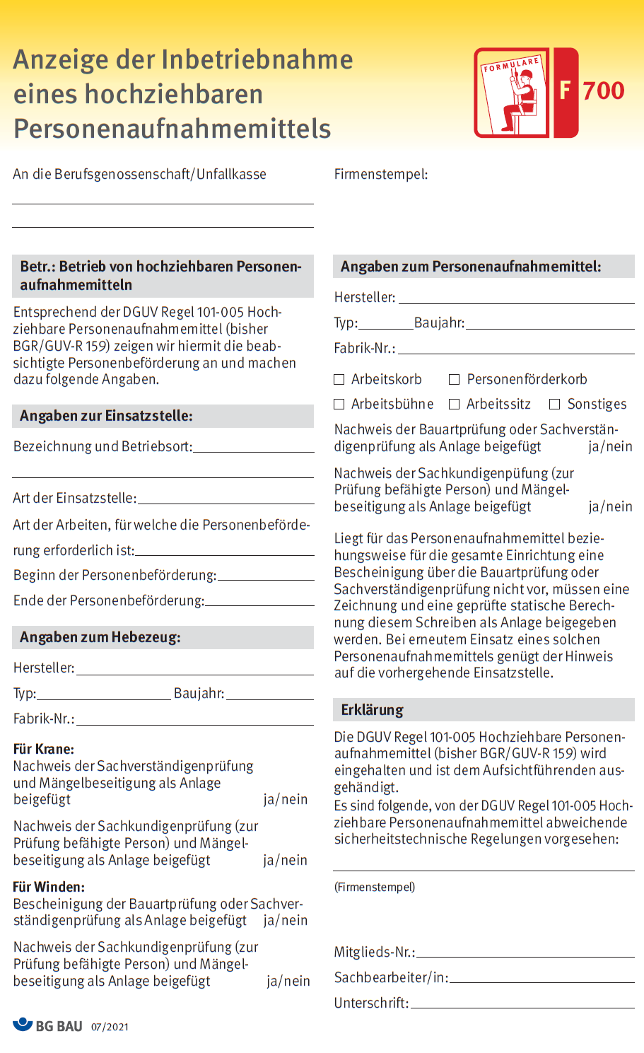Anzeige der Inbetriebnahme eines hochziehbaren Personenaufnahmemittels