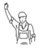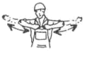 | Halt - Gefahr | Beide Arme seitwärts waagerecht ausstrecken, Handflächen zeigen nach vorn und Arme abwechselnd anwinkeln und strecken | ![]() |
