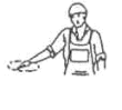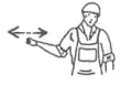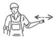 | Rechts fahren - vom Einweiser aus gesehen | Den rechten Arm in horizontaler Haltung leicht anwinkeln und seitlich hin- und herbewegen | ![]() |