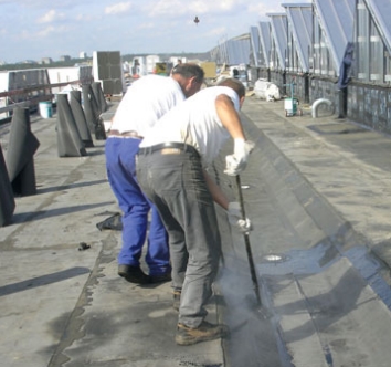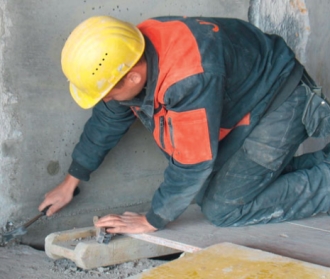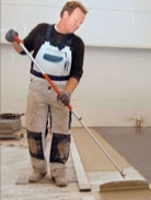 Arbeiten auf dem Boden und in Bodennähe sind naturgemäß nicht zu vermeiden. Das wissen Fliesenleger, Parkettleger, Raumausstatter, Dachdecker, Estrichleger, Pflasterer und viele andere. Manche haben bereits Rücken- und Gelenkbeschwerden. Auch wenn es ungewohnt ist: Durch den Einsatz von Hilfsmitteln kann teilweise im Stehen oder Sitzen gearbeitet werden. Geeignete Hilfsmittel und Arbeitsweisen sind:
