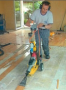 Üblicherweise werden Parkett- und andere Hartböden mit handgeführten Schabern oder Elektrohämmern entfernt. Durch die Benutzung eines im Wagen geführten Elektrohammers ist das Arbeiten in aufrechter Körperhaltung möglich. Das Gewicht des Hammers wird vom Führungswagen getragen. Vibrationen auf das Hand-Arm-System werden reduziert.