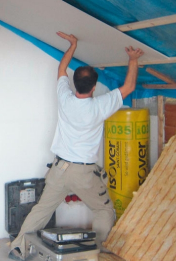 Zur Montage, z. B. von Gipskartonplatten und Pressspanplatten an Wänden, Decken und Dachschrägen.