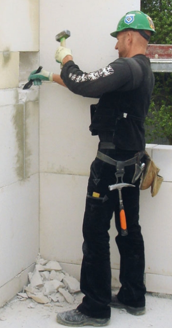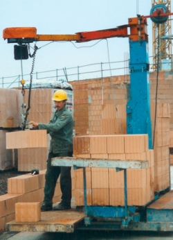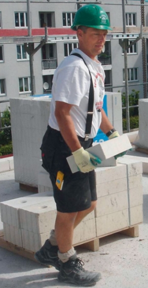 Eine diesbezüglich auch von Ihrer BG BAU gut erforschte Arbeit ist das Mauern mit großformatigen Mauersteinen mit Gewichten bis zu 25 kg, die als Zweihandsteine bezeichnet werden. In der BGI 695 "Merkblatt für das Handhaben von Mauersteinen" wird auf technische Lösungen durch den Einsatz von Minikranen und Mauermaschinen hingewiesen. Es handelt sich um spezifische Lösungen für das Versetzen von Steinen im Mauerwerksbau. Damit können körperliche Belastungen durch das Heben und Tragen schwerer Steine und Planelemente deutlich reduziert werden.