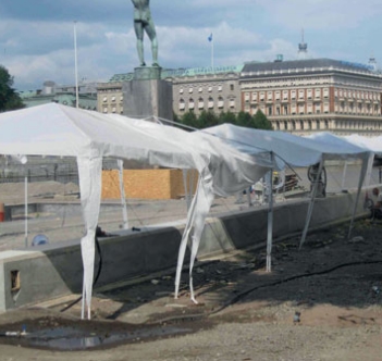 Bauarbeiten finden oft im Freien bei jedem Wetter statt, also auch an heißen Sommertagen. Wenn dazu noch arbeitsbedingte Belastungen wie Wärmeabstrahlung beim Einbau von Bitumenbelag im Straßenbau kommen, wird die Wärmeregulation des menschlichen Körpers bis an ihre Grenzen belastet. Der energetische Wirkungsgrad des Menschen ist gering, denn bei körperlicher Arbeit werden mehr als zwei Drittel der Energie in Wärme umgewandelt, die über die Haut und die Atmung abgegeben werden muss, um die Körpertemperatur zu stabilisieren. Das Herz-Kreislauf-System des Körpers, das den Muskeln die nötige Energie zur körperlichen Arbeit bereitstellt, wird zu maximaler Leistung gezwungen und gibt die Grenzen der körperlichen Leistungsfähigkeit bei Arbeiten z. B. im Hochsommer vor.