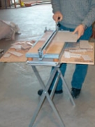 Bei Fliesenlegerarbeiten können Nebenarbeiten wie das Zuschneiden der Fliesen auf einem höhenverstellbaren Arbeitstisch durchgeführt werden