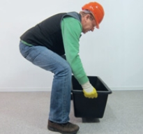 Schwere Last: beidhändig, nah herantreten, aus der Hocke heben, körpernah, Rücken gerade halten