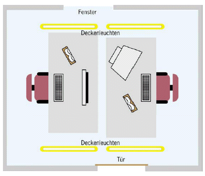 - Günstig ist die Anordnung der Raumleuchten parallel zum Fenster