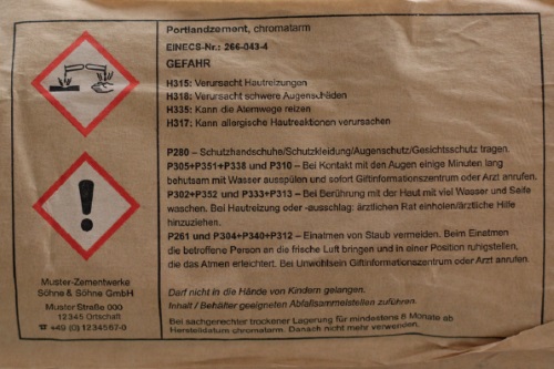 Die gängigsten Kennzeichnungen für die Bauwirtschaft sowie die entsprechenden R- und S-Sätze finden Sie im Anhang 1.