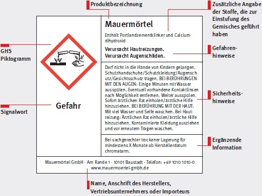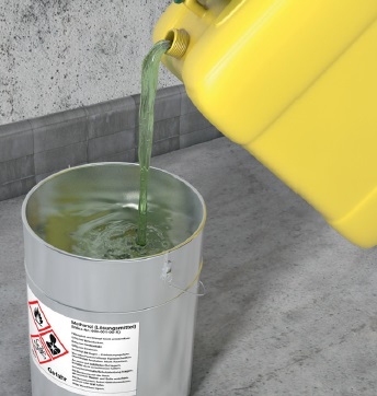 Wenn Sie Bau-Chemikalien in nicht gekennzeichnete Gebinde umfüllen, sind Sie selbst verpflichtet, die Gefahrstoff-Kennzeichnung auf diesen Gebinden anzubringen. Aufklebbare Vorlagen für solche Kennzeichnungen erhalten Sie im Fachhandel (z. B. Etikettenhersteller oder Gefahrstoffverlage). |