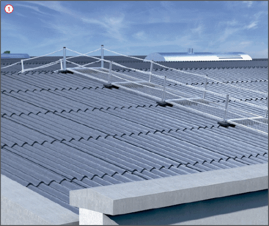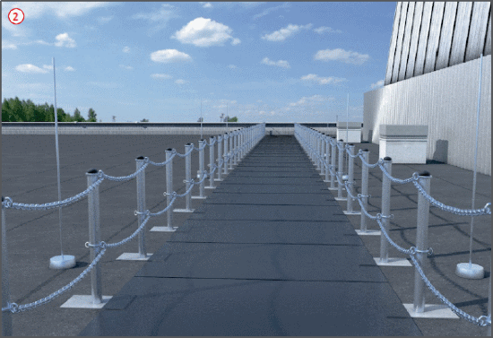 - Sind Anlagen, Einrichtungen und andere Arbeitsplätze nur über nicht durchsturzsichere Dachflächen zu erreichen, Laufstege mit beidseitigem Seitenschutz verwenden