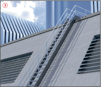 - Bei gelegentlichem Zugang (z.B. zu Wartungsarbeiten) einer geringen Anzahl unterwiesener Beschäftigter, können Steigleitern oder Steigeisengänge genutzt werden,