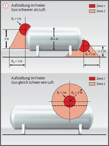 .Explosionsgefährdete Bereiche bei oberirdisch im Freien aufgestellten Gaslagerbehältern