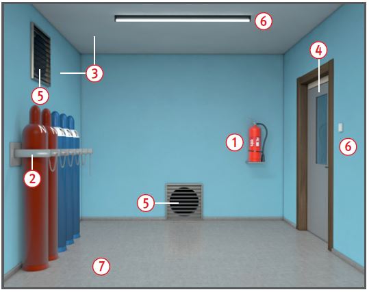 - Am Zugang muss auf das Verbot von Zündquellen und die Lagerung von Gas durch Warnschilder hingewiesen werden.