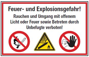 . Im Schutzbereich dürfen sich keine Zündquellen befinden. Es muss ein Warnschild vorhanden sein.