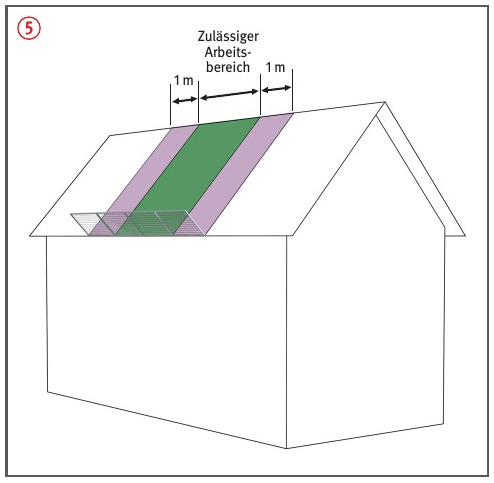 Fehlende Sicherungsmaßnahmen beim Auf- bzw. Abbau, nicht sachgerechte Befestigung sowie Ausführung von Dacharbeiten außerhalb des zulässigen Arbeitsbereiches können zu Absturzunfällen führen.
