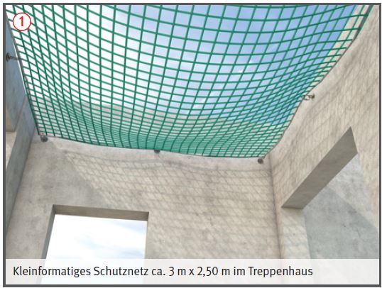 - Kleinformatige Schutznetze können als technische Schutzmaßnahme gegen Absturz an Öffnungen in Decken