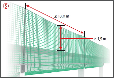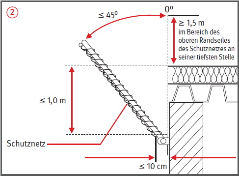 - Horizontaler Abstand zwischen Schutznetz und Bauwerk max. 10 cm