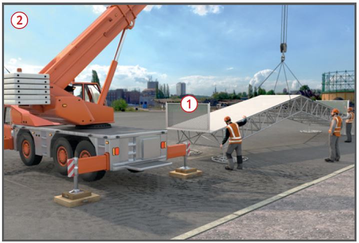 - Für das Versetzen von vormontierten Konstruktionen sind die Anschlagpunkte (aus AuV) und die Anschlagmittel in der Montageanweisung festzulegen.