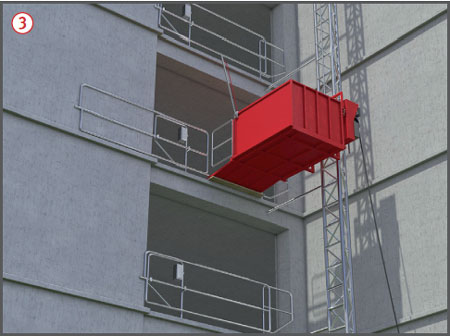 Bei Auf- und Abbau von Anstellaufzügen Betriebs- und Montageanleitung des Herstellers beachten. Hieraus können u. a. die Verankerungsabstände des Fahrmastes entnommen werden.