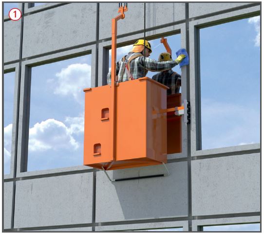 - Während der Benutzung von Fassadenbefahranlagen darunter liegende Arbeitsbereiche und Verkehrswege freihalten und absperren.
