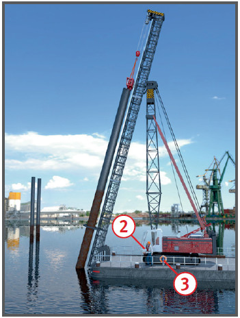 - Ponton nach Größe und Gewicht der Ramme/Hebezeug auswählen.