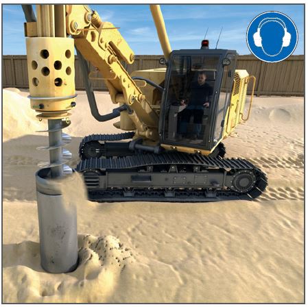 Durch drehende Bohrrohre/Schnecken/Hohlwendel besteht Einzugsgefahr.