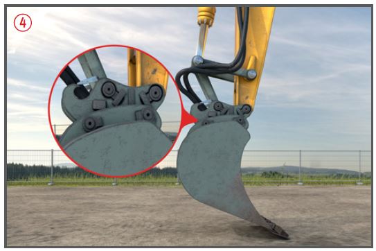 Nur Schnellwechslern betreiben, die dem Stand der Technik entsprechen. Beim Neukauf darauf achten, dass Schnellwechsler mit zusätzlichen Sicherungsfunktionen angeschafft werden, z. B. mit einer automatischen Erkennung der korrekten Verriegelungsposition oder mit einem zusätzlichen Sicherungssystem an der Aufnahmeachse.