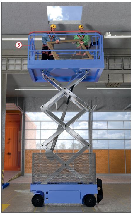 Beim Verfahren der Hubarbeitsbühne dürfen sich Beschäftigte nur auf der Arbeitsbühne aufhalten, wenn dies in der Betriebsanleitung beschrieben ist.
