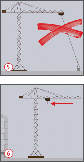 - Funktion der Hakensicherung am Kranhaken täglich überprüfen