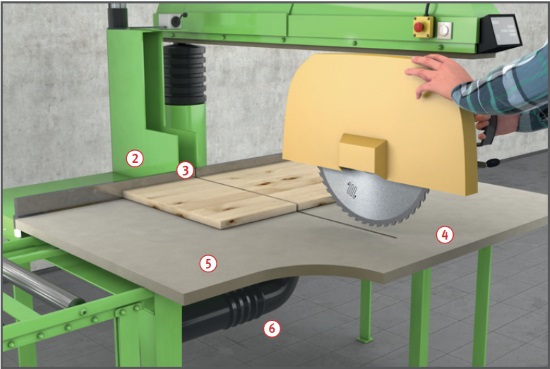 Gefahrenbereich von 120 mm rund um das Sägeblatt beachten.