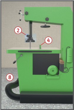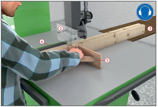 - Es kann zu Schnittverletzungen kommen und bei einem Verkanten des Werkstücks kann das Bandsägeblatt reißen und Verletzungen verursachen.