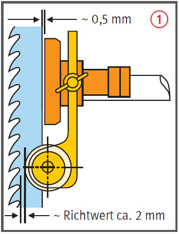- Seitenführung bis dicht an den Zahngrund heranstellen,