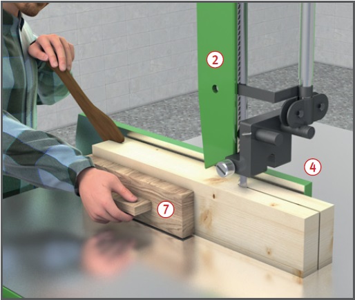 - Zuführholz oder Schiebestock zum Vorschieben schmaler Werkstücke