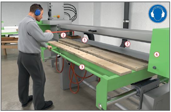 - Gehörschutz und Sicherheitsschuhe benutzen. Lärmbereiche kennzeichnen.