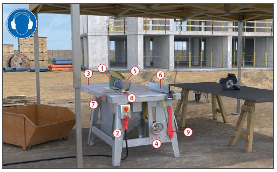 An der Handmaschine muss der gesamte Zahnkranz des Blattes über der Auflage mit fester Verkleidung versehen sein ⑮.