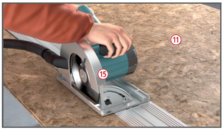 Großformatige Platten mit Handkreissäge und Führungsschiene schneiden .