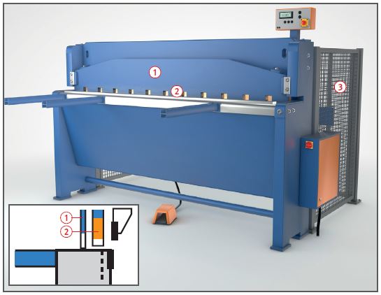 Schnittlinie sowie Stempel- oder Balkenniederhalter auf ganzer Länge durch Schutzleiste oder Schutzgitter abdecken .