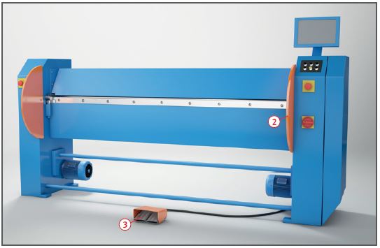Für die Bedienung der Maschine mit Fußschalter ist mindestens ein 2-pedaliger Fußschalter mit Not-Halt-Funktion (Öffnen der Oberwange) für die Bedienperson erforderlich .